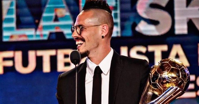 Капитан Наполи Марек Хамшик посетил мероприятие, где получил награду в честь того, что стал лучшим футболистом Словакии за прошлый год.