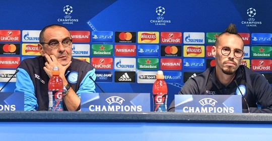 Наставник Наполи Маурицио Сарри и хавбек команды Марек Хамшик ответили на вопросы журналистов перед выездной игрой против Манчестер Сити в Лиге Чемпионов.