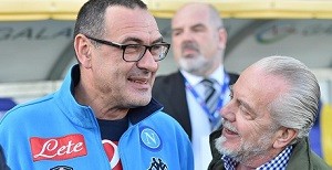 Де Лаурентис тоже на матче. Пристроился под мышкой у Сарри))